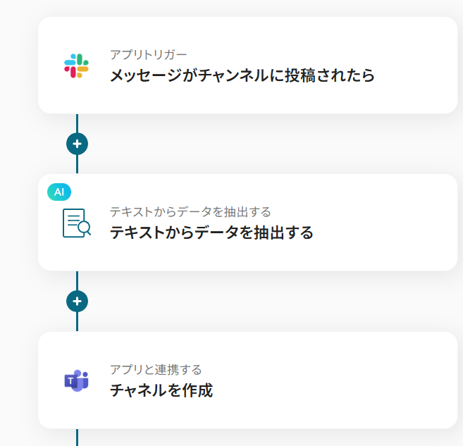 ここでは例として、Slackの指定チャンネルにメッセージが投稿されたら、Microsoft Teamsにチャネルを自動作成するフローの設定手順を解説します。 Yoomを使えば、プログラミングなしで画面操作だけで簡単にこのような連携を設定できます。