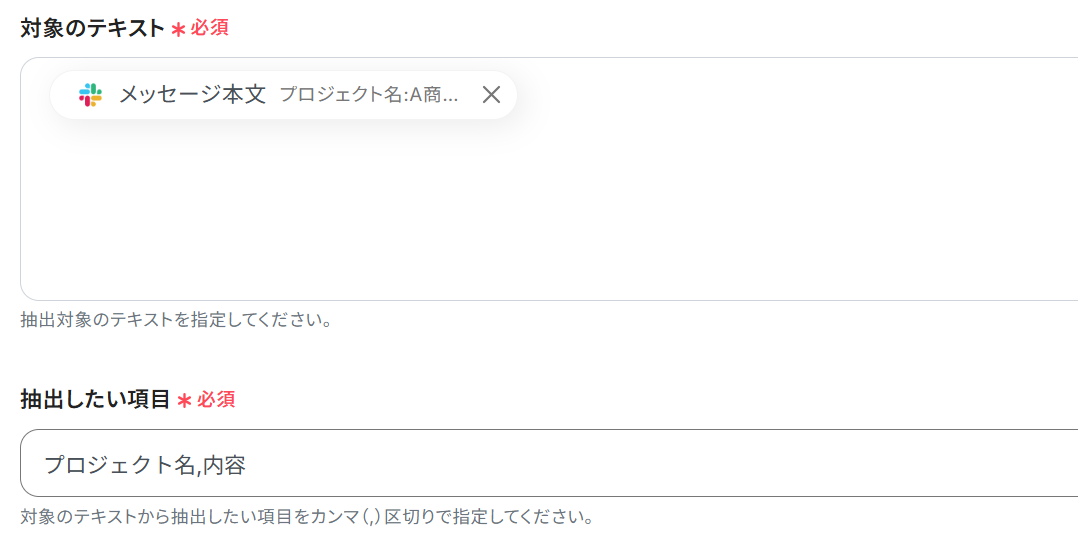 続いて投稿内容から必要項目を取得するため「テキストからデータを抽出する 」をクリックしましょう。