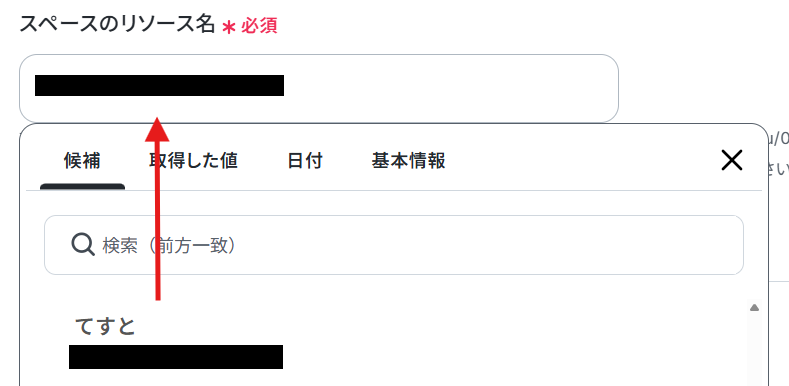 スペースのリソース名は、枠内をクリックし表示された候補から任意で選択してください。