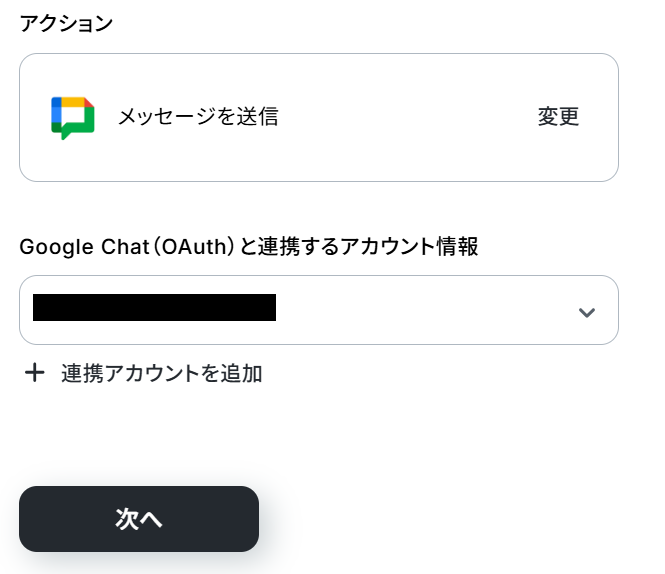 Google Chat(OAuth)と連携するアカウント情報を確認できたら、次のページに進みましょう。