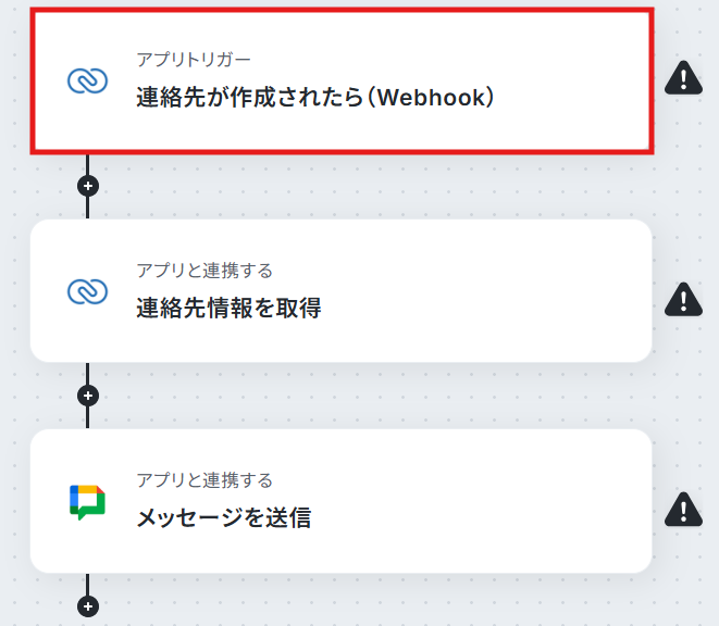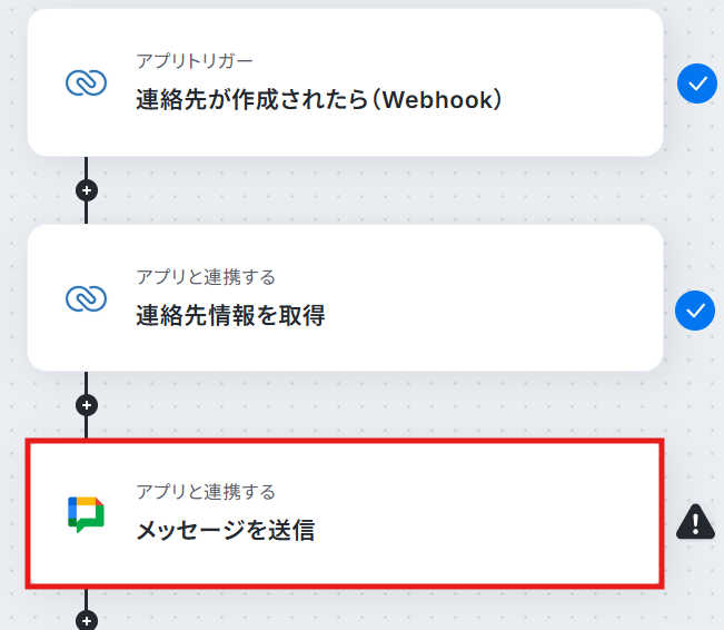 これで、「Zoho CRMで連絡先が作成されたら、Google Chatに通知する」フローの完成です!