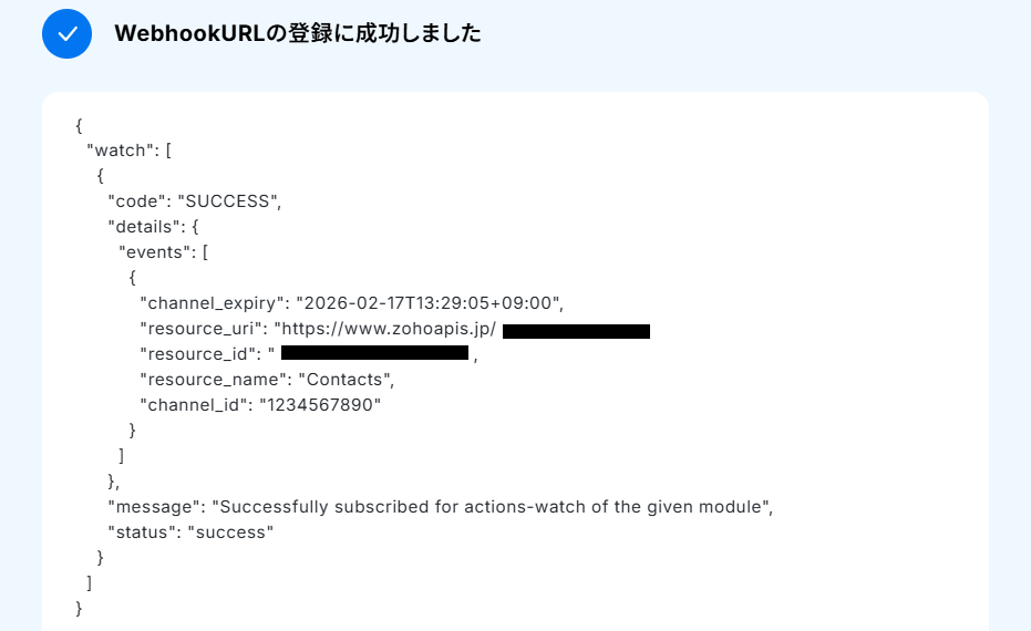 入力が完了したら「WebhookURLを登録」ボタンを押します。