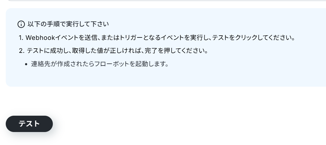 Yoomの画面に戻り「テスト」ボタンをクリックしてください。