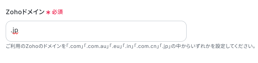 Zohoドメインは、枠外の注釈を参考に設定してください。