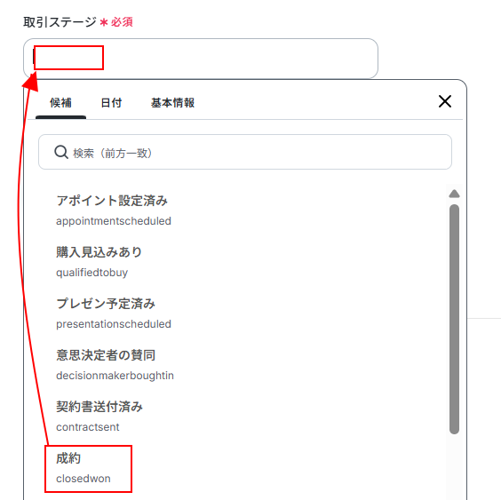 ※取引を作成する際は、以下のコンタクトや会社などの項目を設定してください。