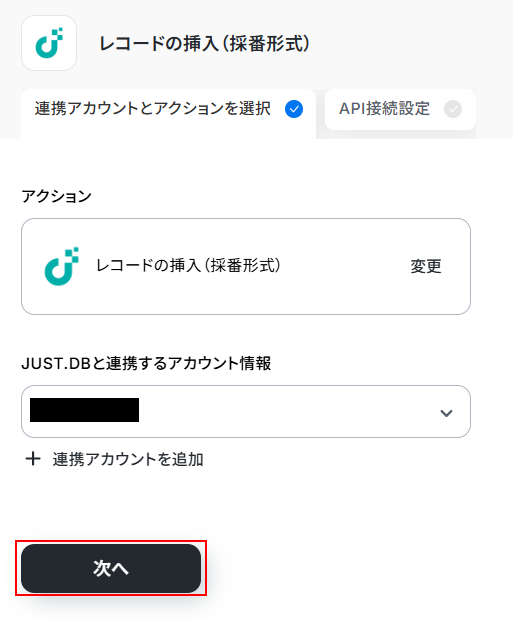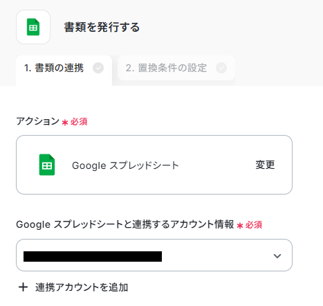 連携するアカウント情報にはステップ1で連携したアカウントか、連携時に使用していたYoomのアカウントが表示されます。