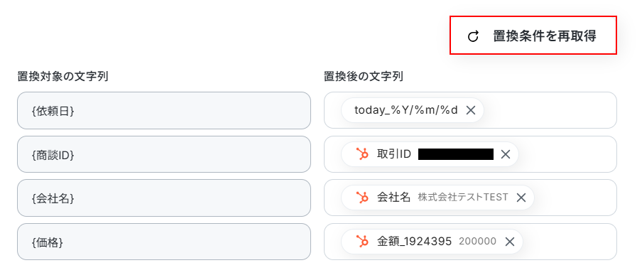 正しく表示されない場合は、置換条件を再取得をクリックしてください。
