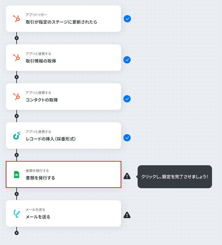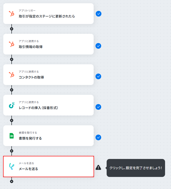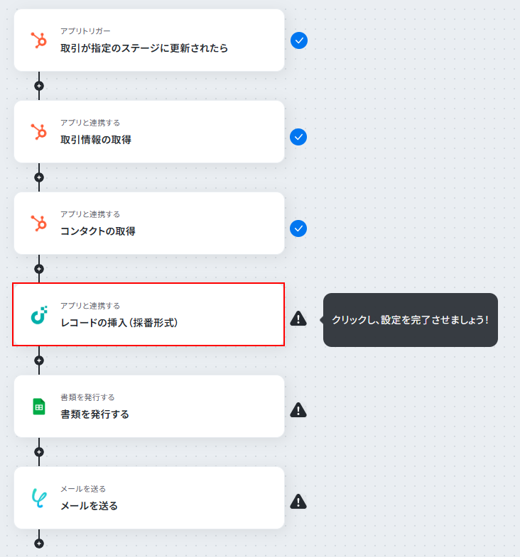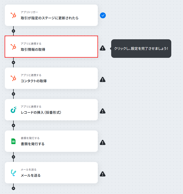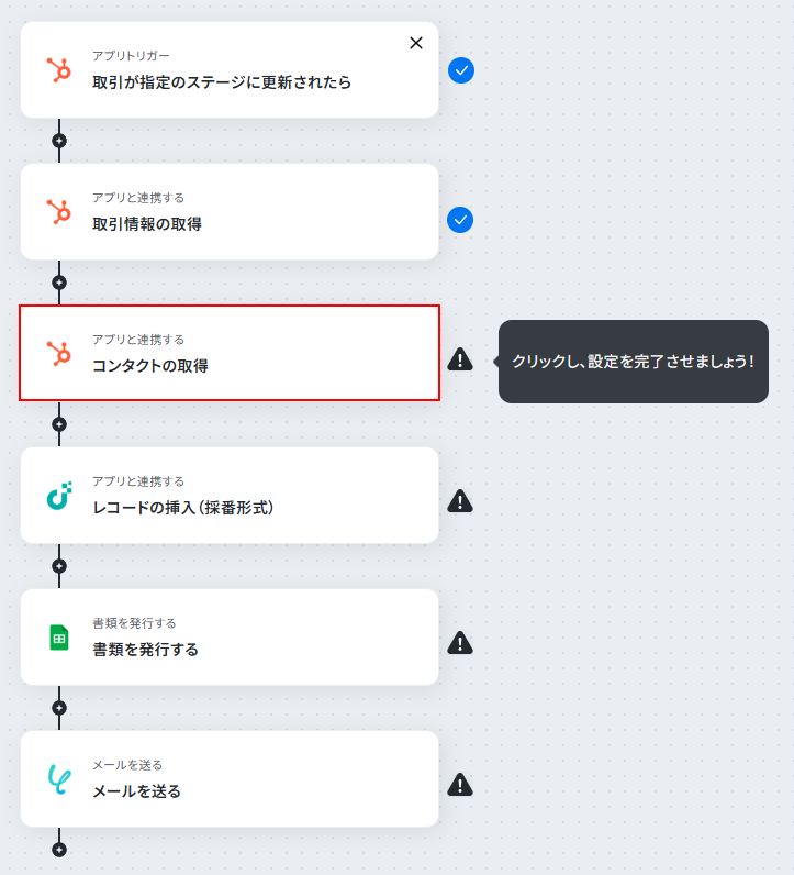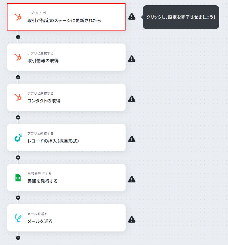 今回ご紹介するテンプレートは、HubSpotの取引が特定のステージに更新されたら起動します。