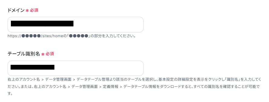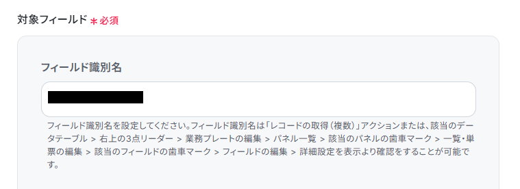 フィールド識別名も同様に、レコードの値を追加したいフィールドの識別名を注釈を確認しながら設定します。
