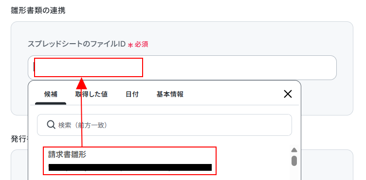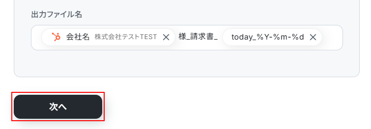 ※直接入力した箇所は固定値となり、このテンプレートを通して発行する全てのファイル名に設定されますのでご注意ください。