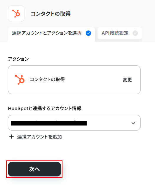 コンタクトIDにはデフォルトで取得した値が設定されています。
