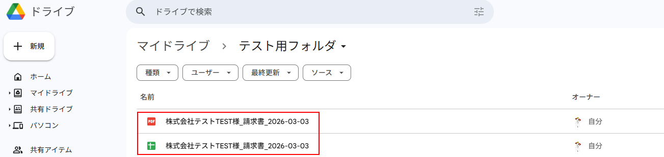 今回作成した請求書は自動でGoogle Driveのフォルダに保存されます。
