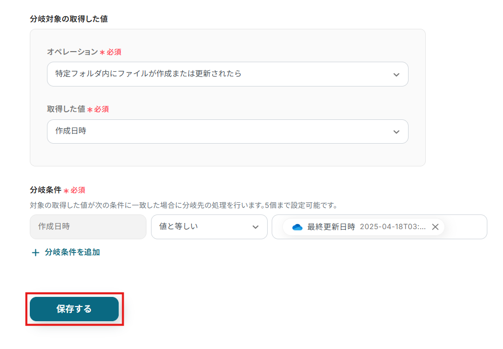 ・アプリの仕様上、ファイルの作成日時と最終更新日時が同一にならない場合があり、正しく分岐しない可能性があるのでご了承ください。
