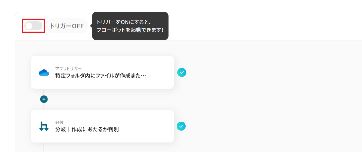 ステップ8:フロー稼働の準備(トリガーをONに設定)