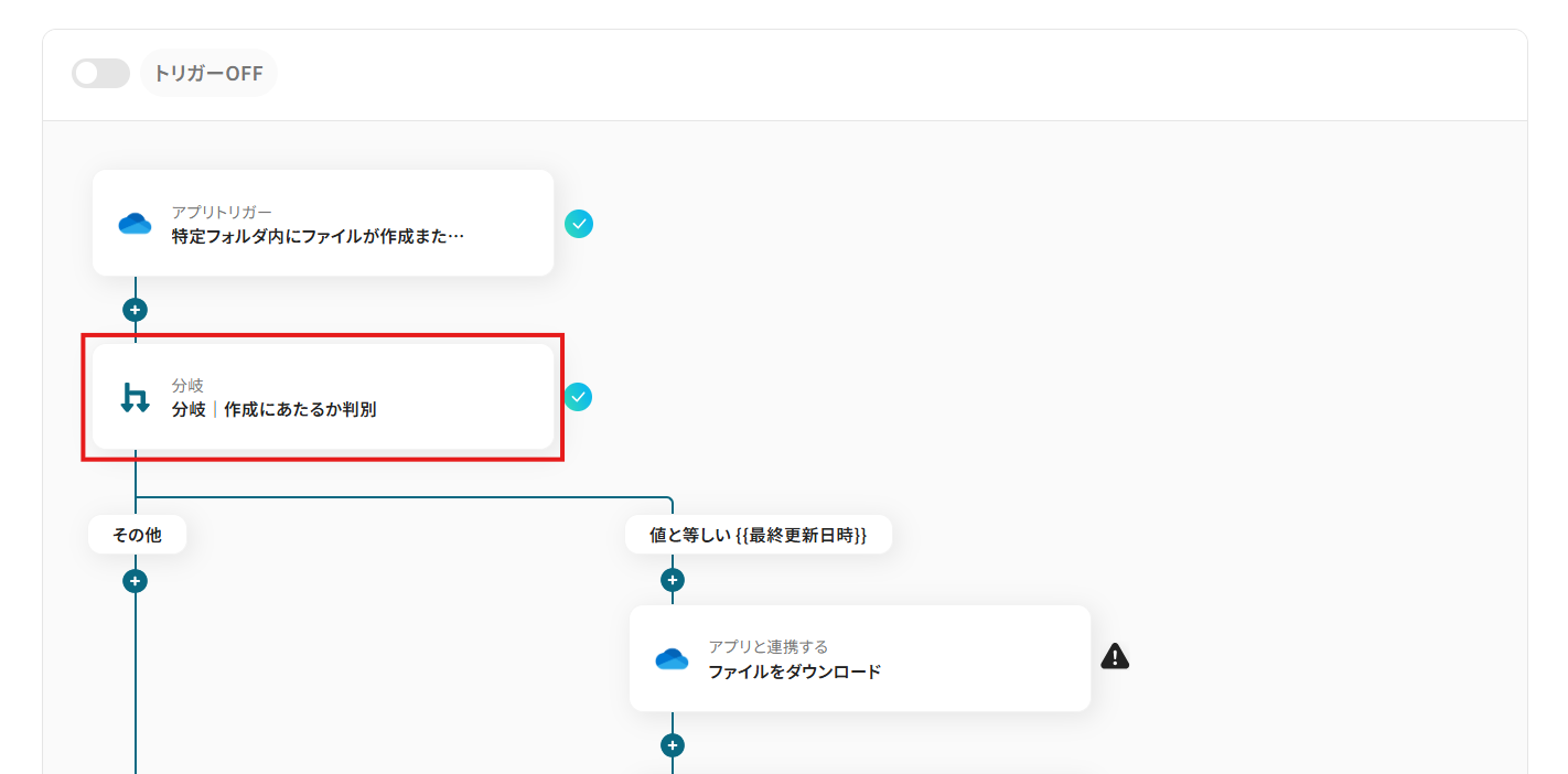フローの画面に戻り、「ファイルをダウンロード」にチェックマークがついていれば完了です。