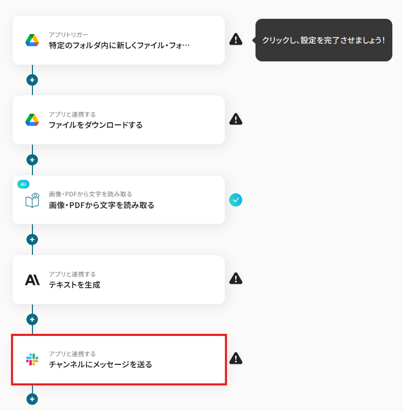 「Google DriveにアップロードされたファイルをOCRして、Anthropic(Claude)で要約後、Slackに通知する」ワークフローは、作業の効率化を図ることができます。