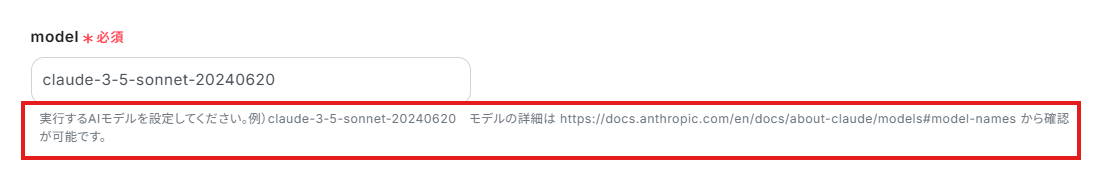 「model」は、入力欄下の説明に従って、入力してください。