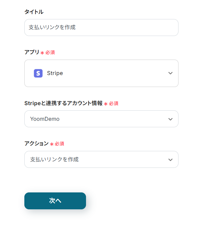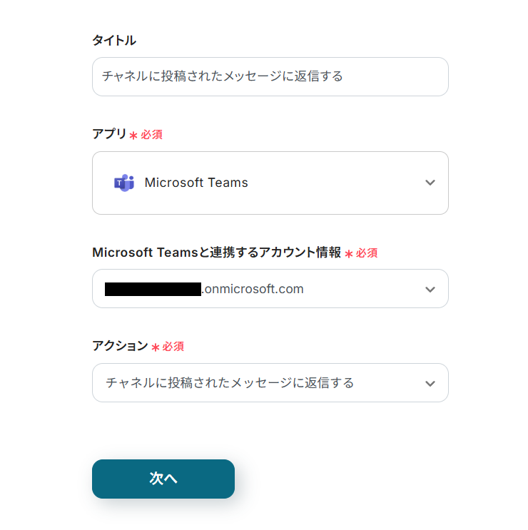 連携アカウントとアクションを確認し、「次へ」をクリック。