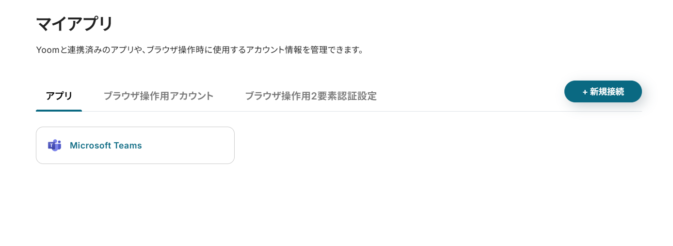 先ずは、Microsoft TeamsアカウントとStripeアカウントを「マイアプリ」に登録し、Yoomと連携させましょう。 この設定は初回のみ必要です。