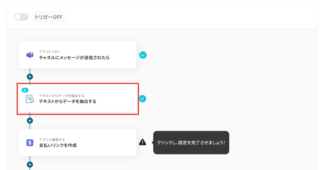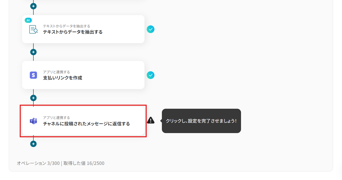 それでは代表的な例として、「Microsoft Teamsの投稿内容からデータを抽出し、Stripeで支払いリンクを自動で作成するフロー」を解説していきます!