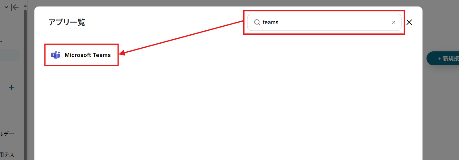 アプリ一覧画面が表示されたら、右上の検索バーでアプリ名(ここではMicrosoft Teams)を検索して選択。
