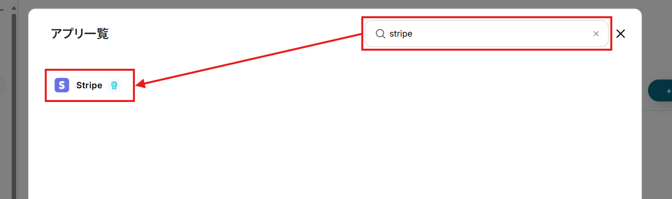 同じくStripeも連携していきましょう。 「アプリ一覧」でStripeを検索して選択。