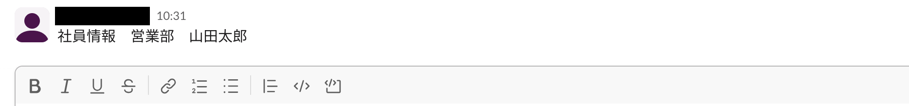ここで、Slackの画面に移動し、先ほど指定したテキストを含む文章をテスト投稿しましょう。