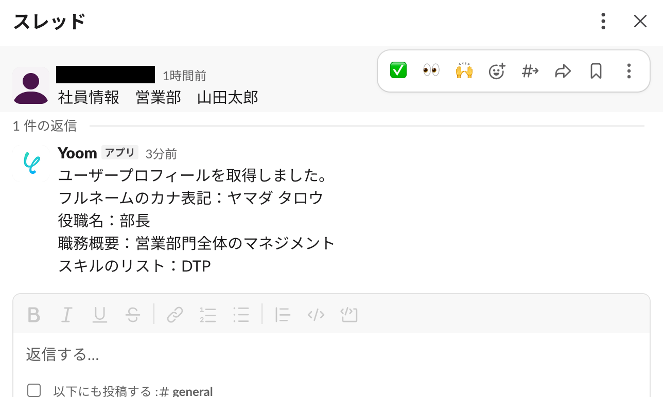 もし、Slack上で特定のメッセージを送信するだけで、PHONE APPLI PEOPLEからユーザープロフィールを自動で取得し、スレッドに返信してくれる仕組みがあれば、こうした情報確認の手間から解放され、より迅速でスムーズなコミュニケーションを実現し、本来集中すべき業務に多くの時間を使えるようになります!