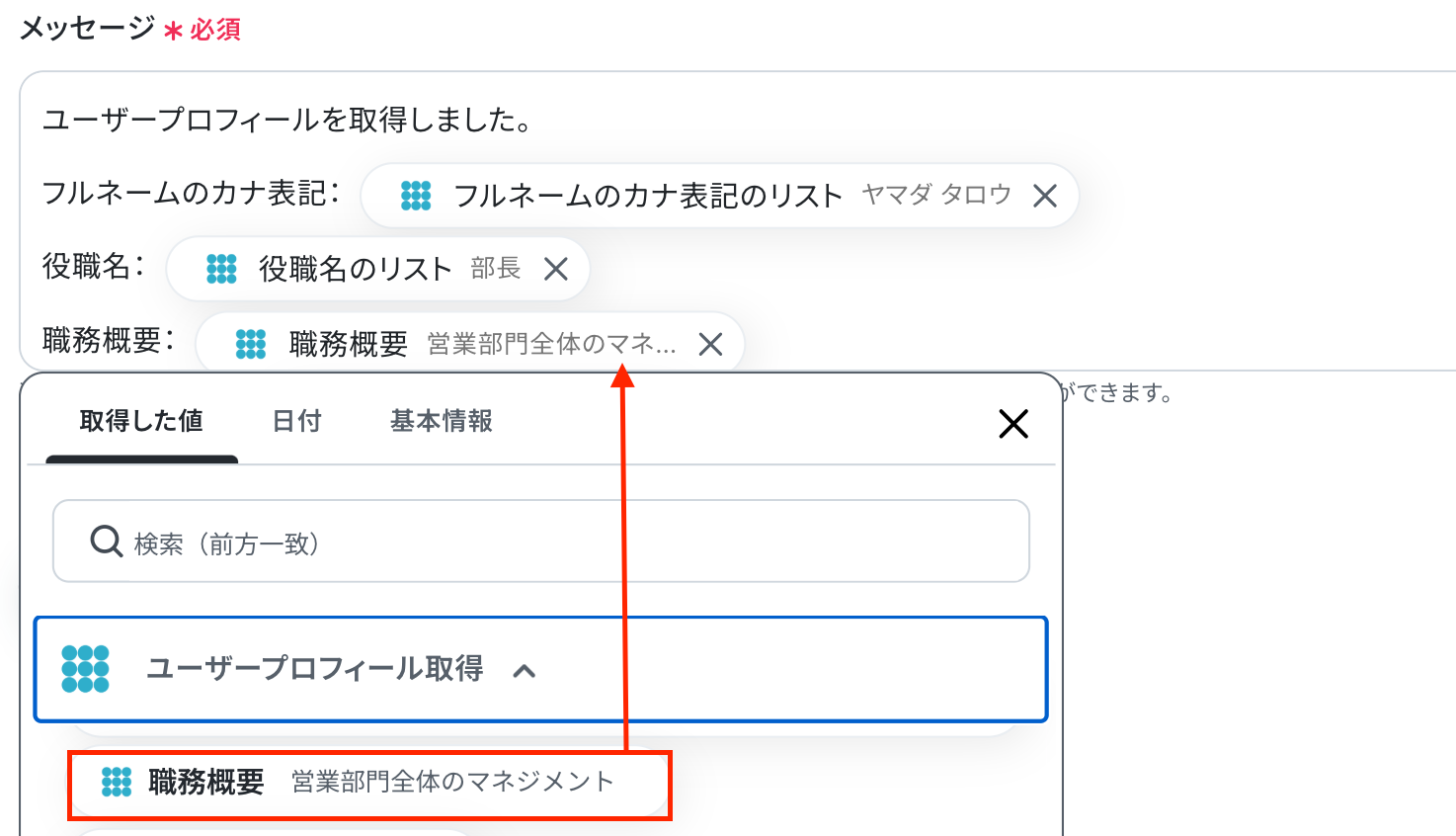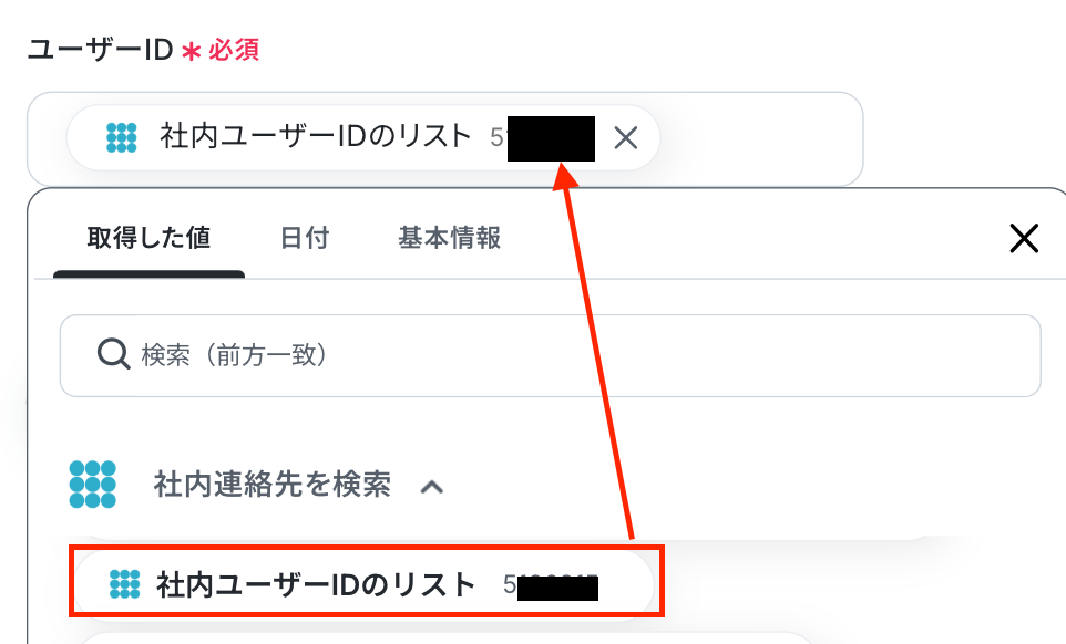 先ほどのステップで取得した値から選択してください。