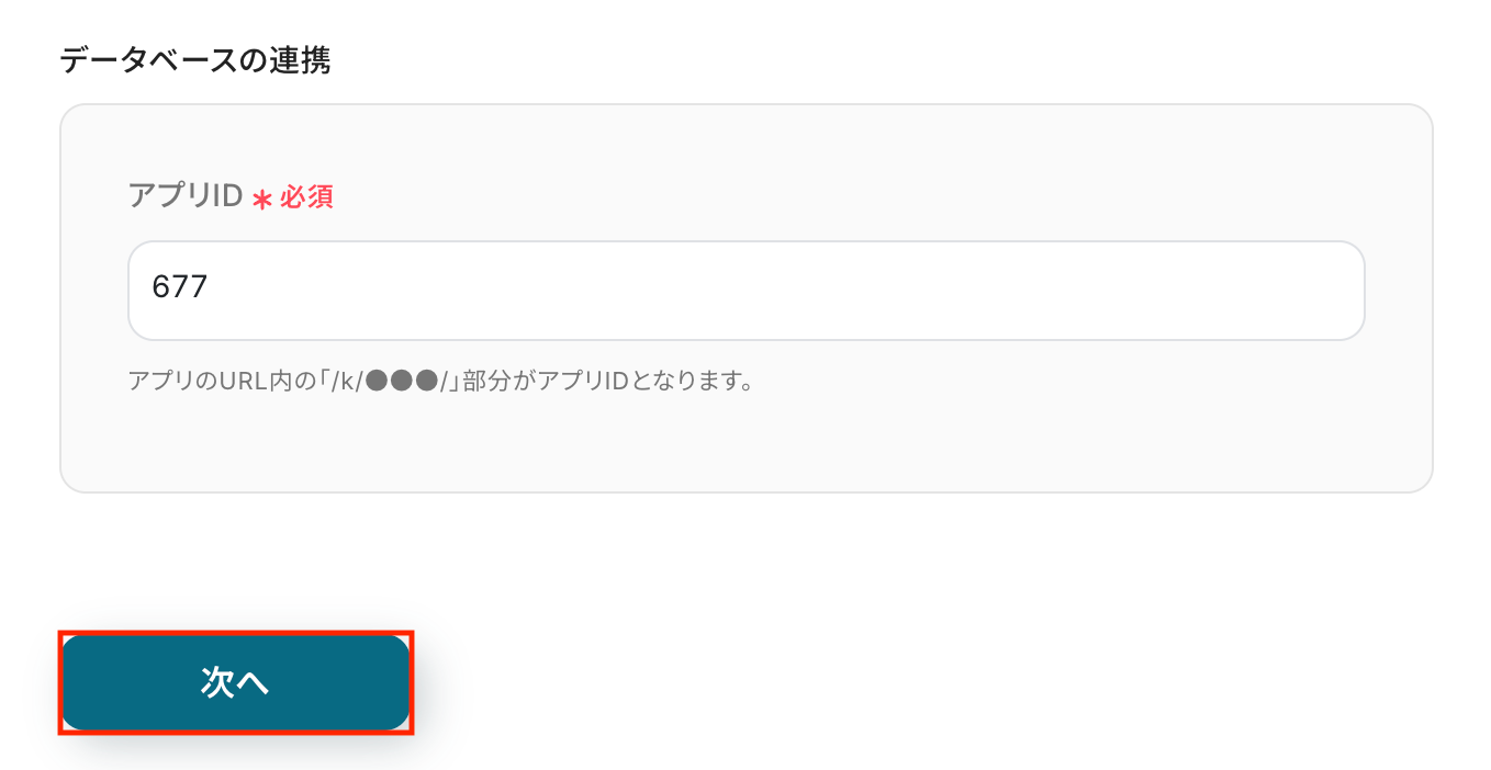 連携させるkintoneアプリURLから注釈に沿って入力してください。