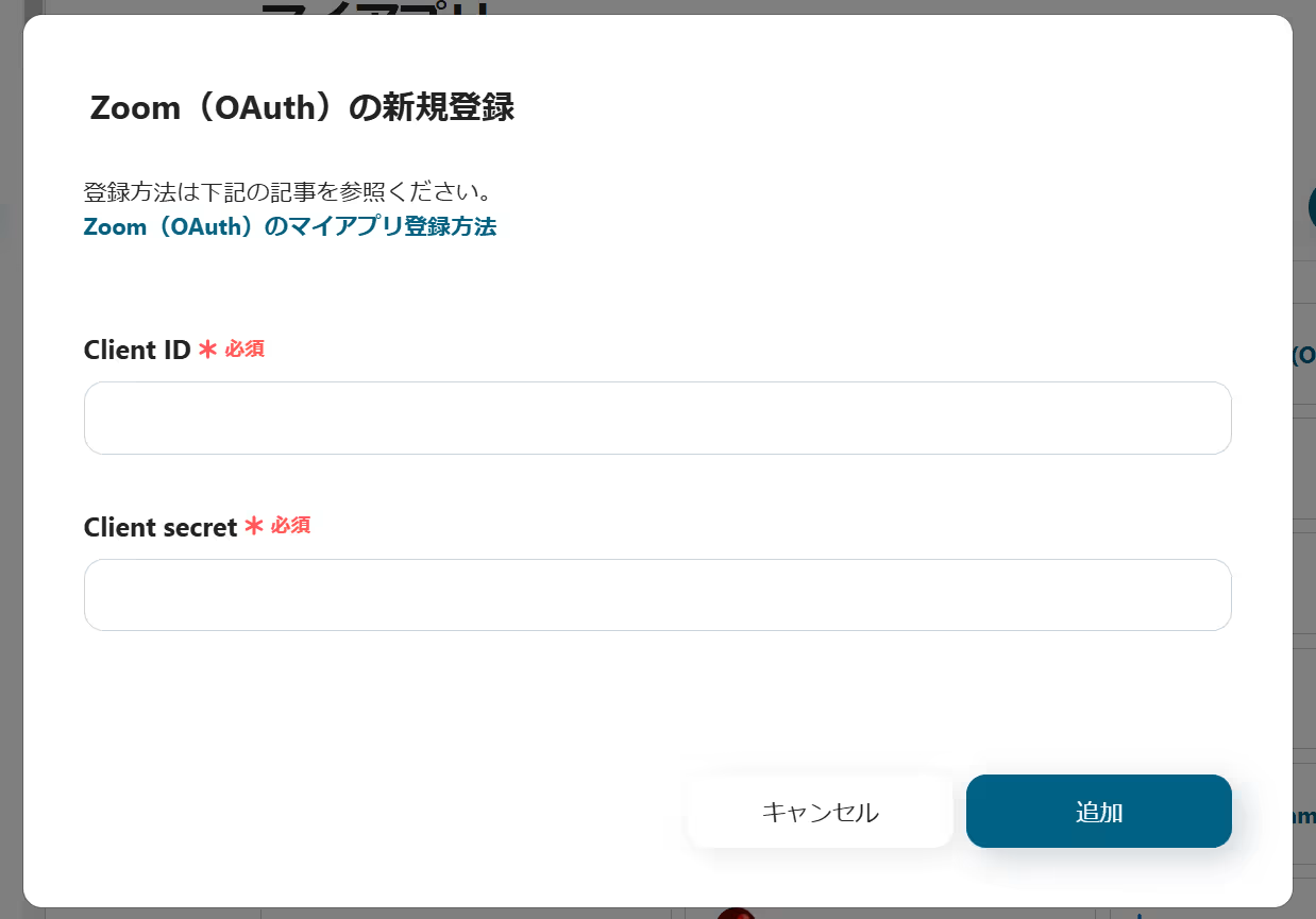 ※注意点 ・Zoomを登録する際は、Client ID とClient secret の値が必要になります。