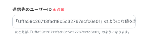 3.LINE公式アカウントに通知したいアカウントのユーザーIDを入力します。 ※ユーザーIDについての確認方法はこちら をご覧ください。