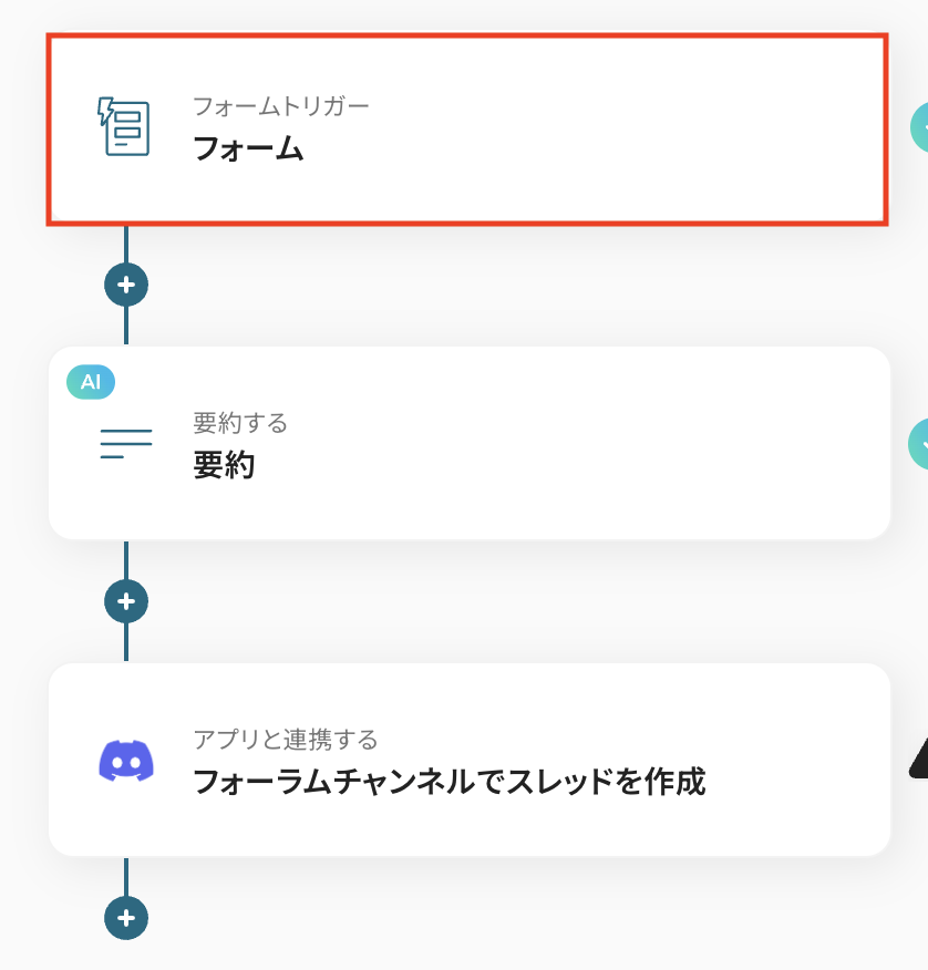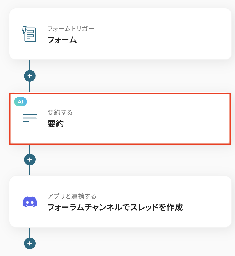 このワークフローを活用すれば、フォームの回答内容をAIが自動で要約し、指定したDiscordのスレッドへ通知を送信できるため、問い合わせ対応の初動を円滑に進めることが可能です。