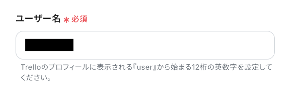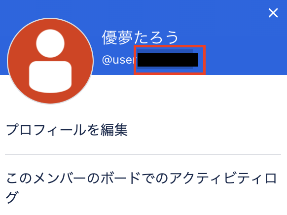「ユーザー名」を、Trelloのプロフィール画面で確認しましょう!「@user⚪︎⚪︎⚪︎」の@以降がユーザー名になります。