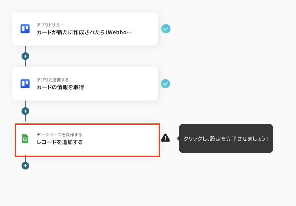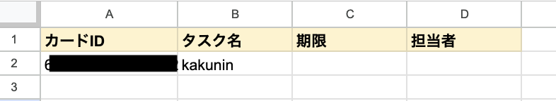 ここで設定したGoogle スプレッドシートのタブに、Trelloのカード情報を追加していきますよ!