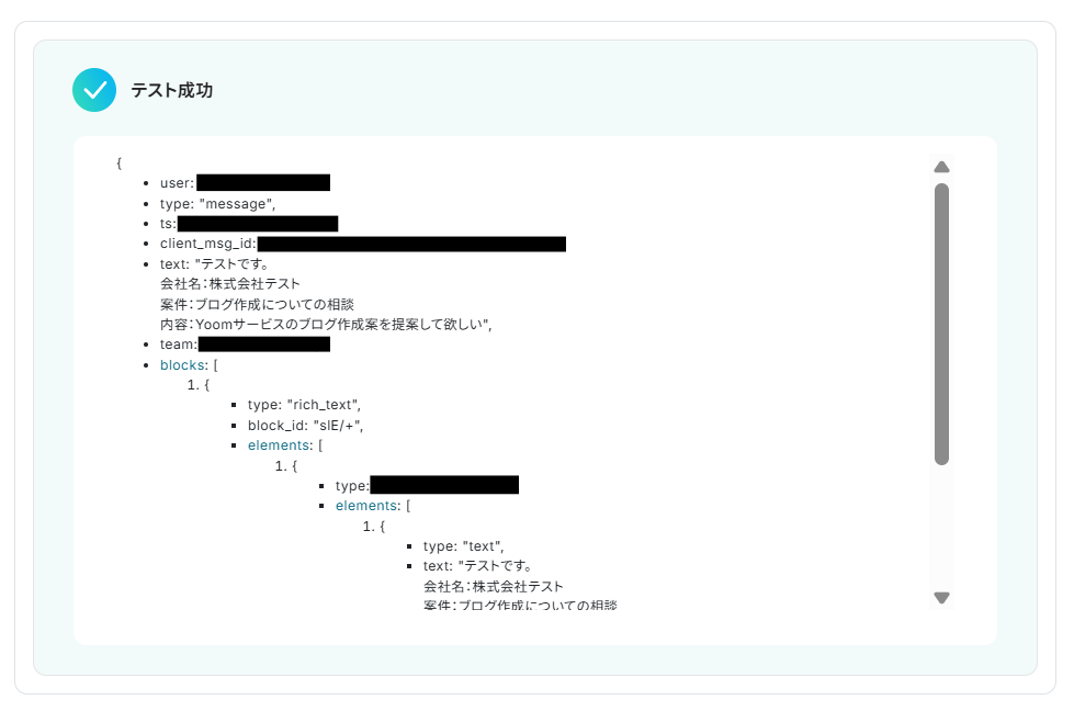 メッセージが投稿されたら、起動するフローなので、テスト前にメッセージを投稿してからテストを行いましょう。