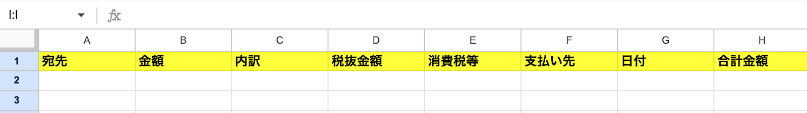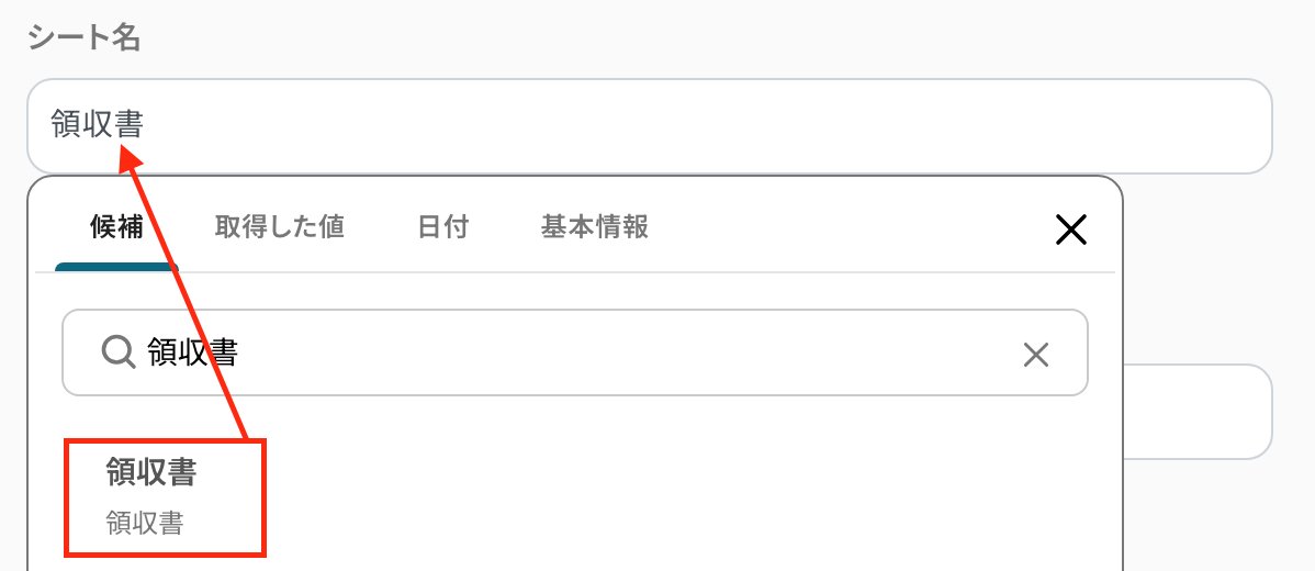 - シート名:領収書のデータを追加したいシートを候補から選択