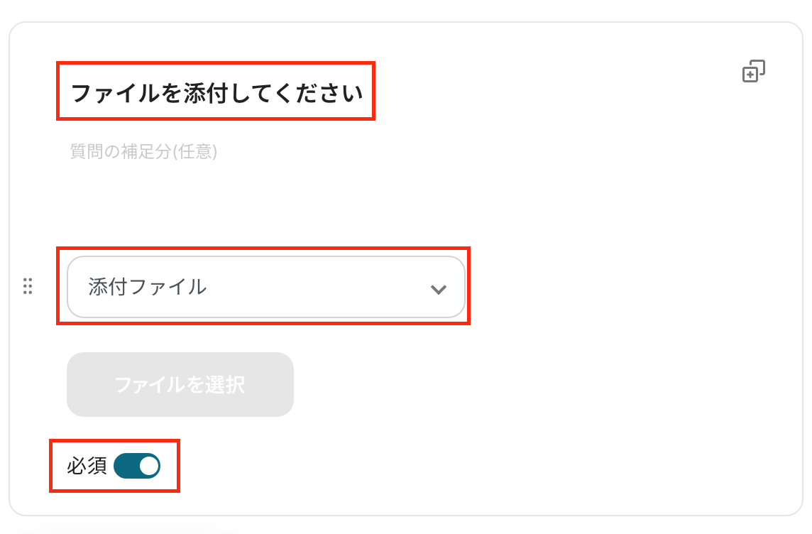今回は、先ほど設定したフォームから送信されたファイルを使用するので、「取得した値を使用」と「添付ファイル1」を選択してください。