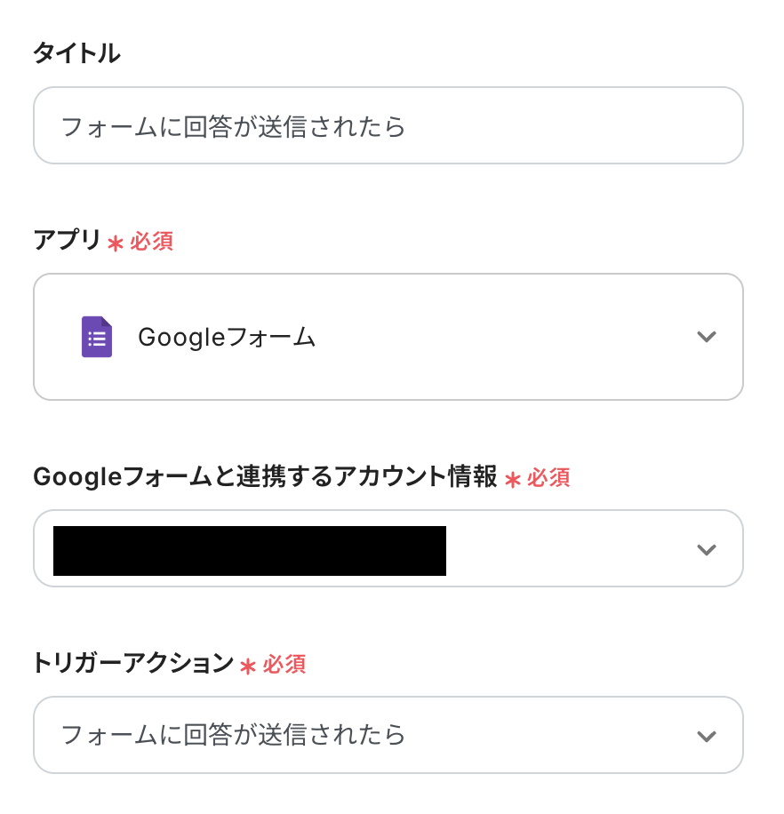 「トリガーアクション」:「フォームに回答が送信されたら」を選択