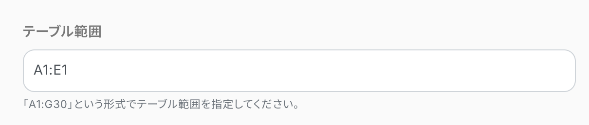 最後に「テーブル範囲」をMicrosoft Excelシートに合わせて入力します。