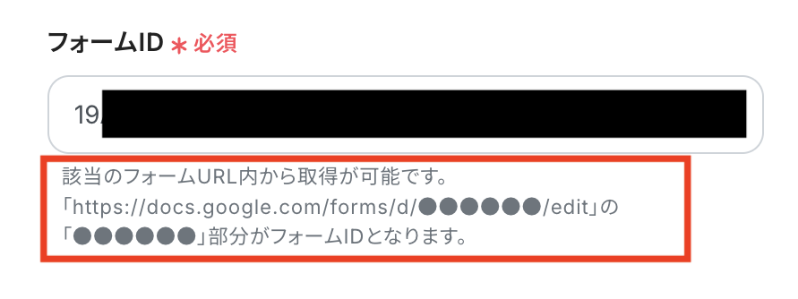 次に、連携したいGoogleフォームの「フォームID」を入力します。