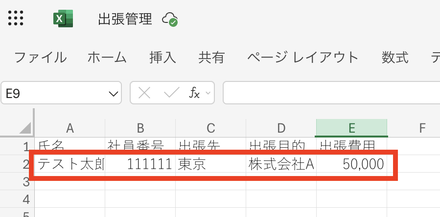 連携したMicrosoft Excelシートにデータが追加されていればテスト成功です。