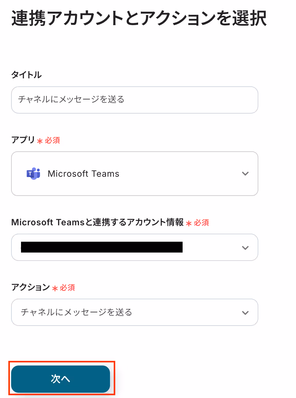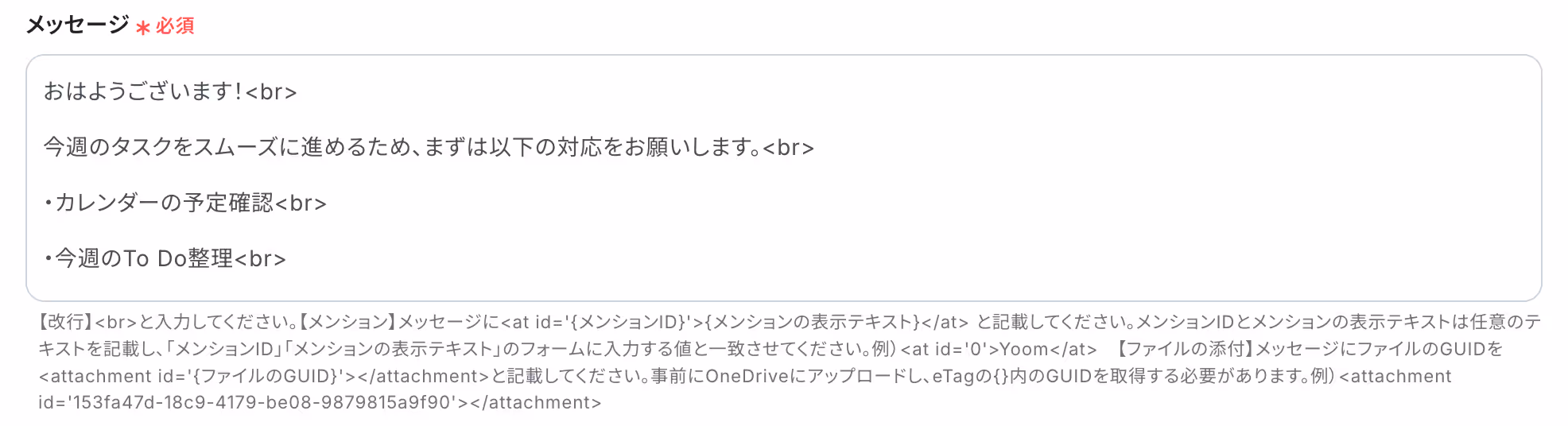 次に、Microsoft Teamsに通知する文章を設定します。
