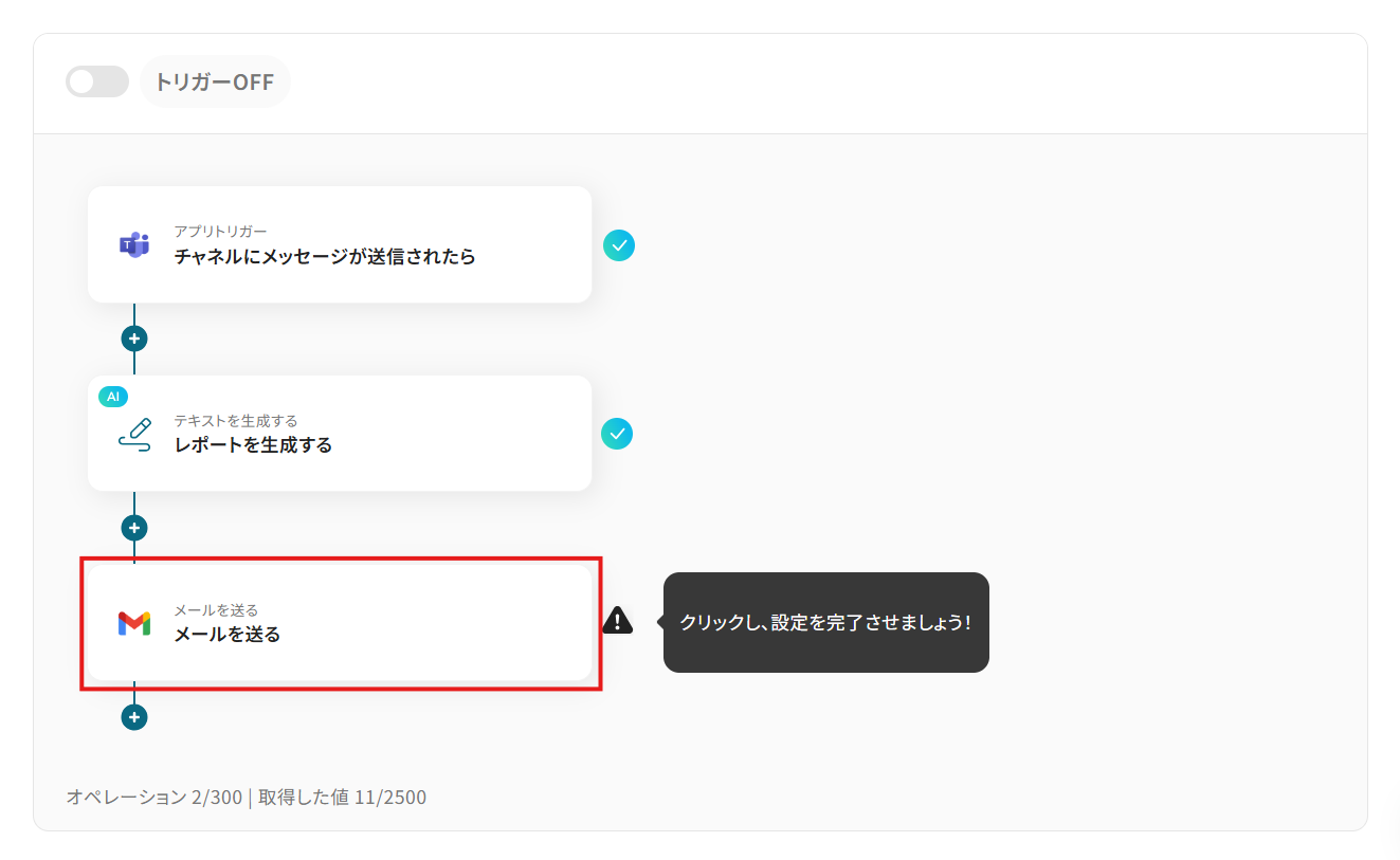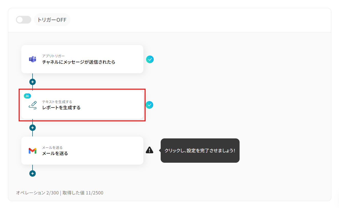 それでは代表的な例として、Microsoft Teamsに特定の投稿があった際に、その内容を含むレポートを自動で作成し、指定された宛先にGmailで送信するフローを解説していきます!