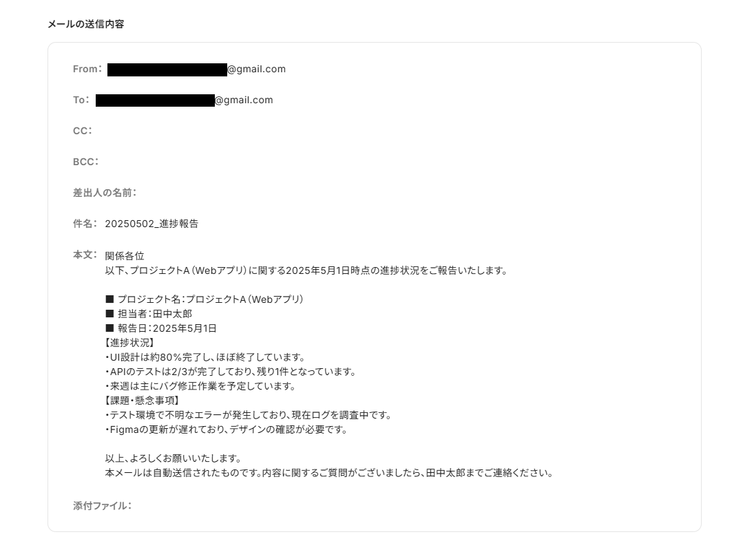 ステップ5:Gmailでレポートの送信