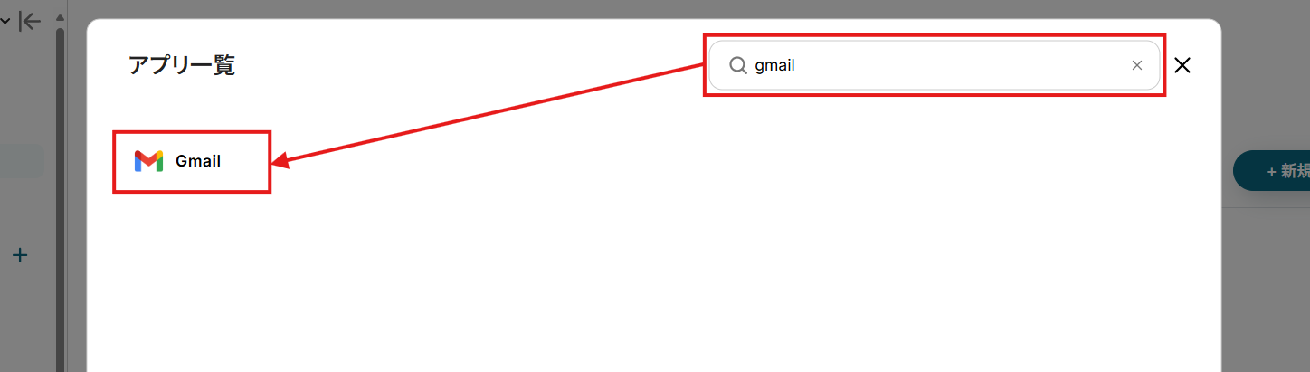 同じくGmailも連携していきましょう。 「アプリ一覧」でGmailを検索して選択。