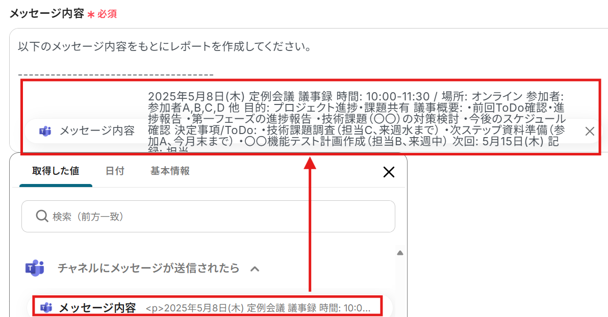 特定条件のMicrosoft TeamsデータをChatGPTに自動で連携してレポート作成する