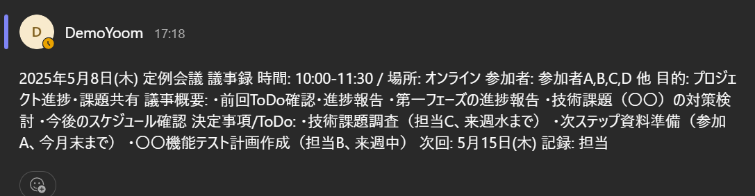 以上が「Microsoft Teamsの投稿内容をもとにChatGPTでレポートを自動作成する 」方法でした。