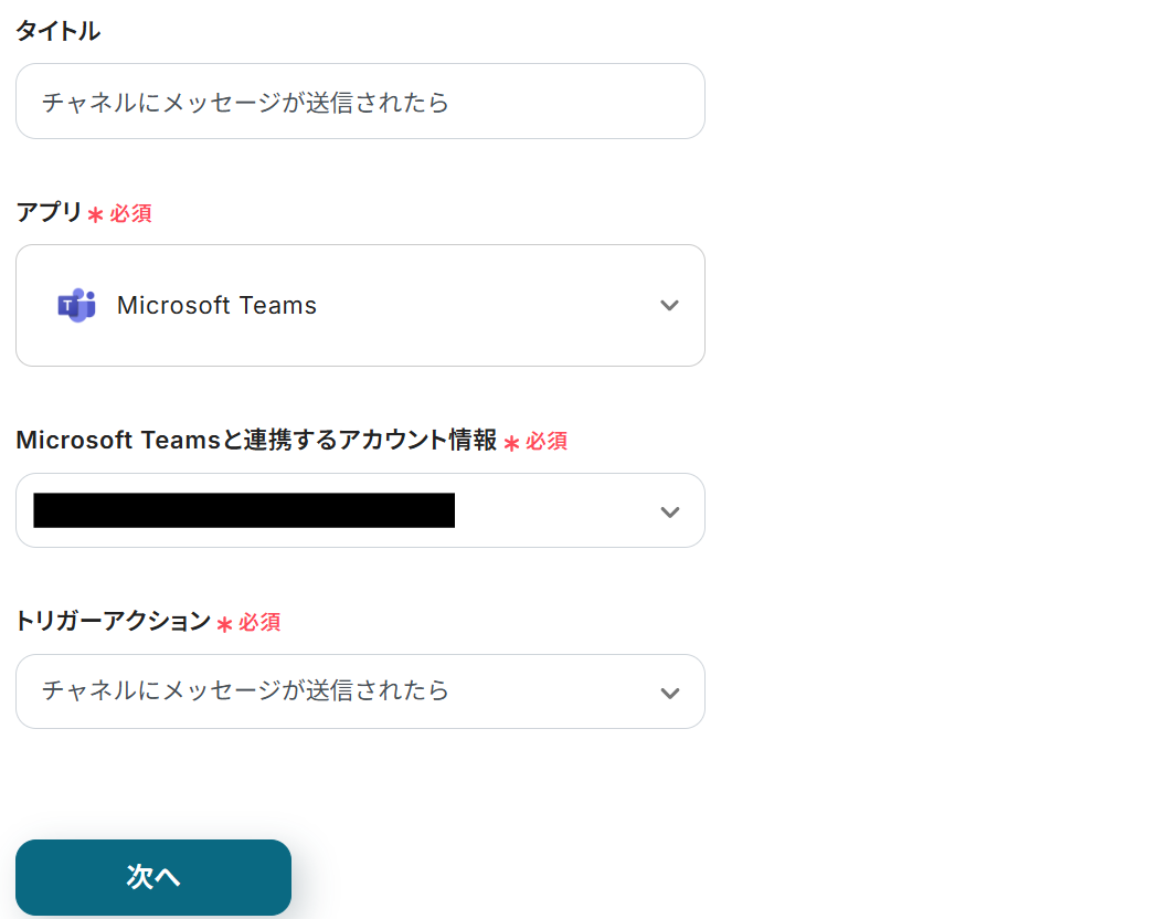 ステップ3: Microsoft Teamsのトリガー設定