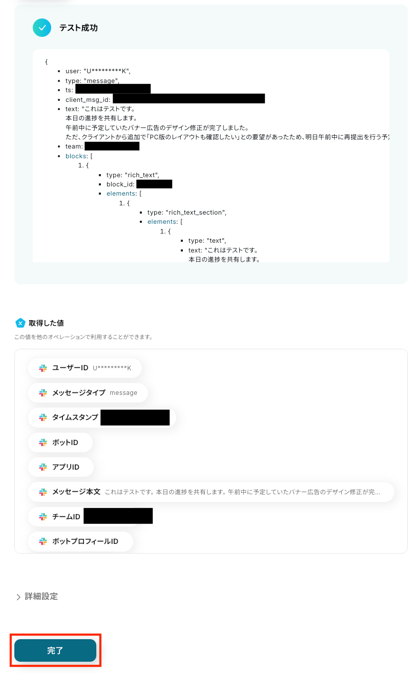 ステップ3:Slackで指定テキストを含むメッセージを検知する